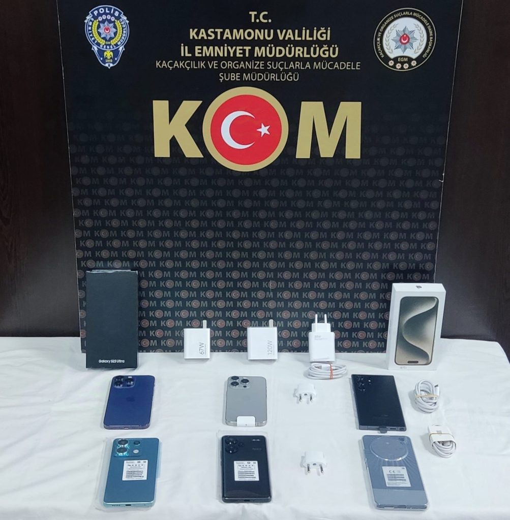 Kastamonu Emniyet Müdürlüğüne bağlı KOM Şube Müdürlüğü ekiplerinin çalışmaları hız kesmeden devam ediyor. Kaçakçılığın önlenmesi için yapılan çalışmalar sonucunda; 6 adet gümrük kaçağı cep telefonu, 5 adat şarj cihazı ile 3 adet şarj kablosu ele geçirildi. Yakalanan 1 şüpheli şahıs hakkında adli işlem başlatıldı.