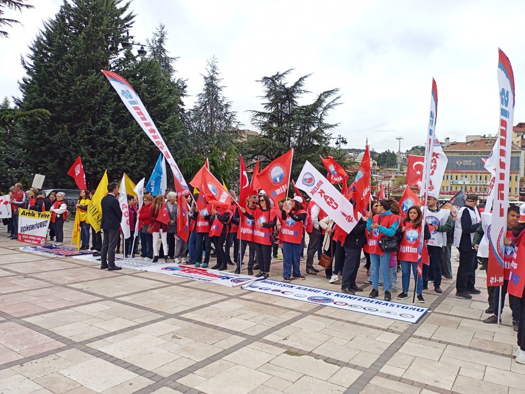 Tevfik Bal Ardından devam ederek;”Kardeşler,yurttaşlar, günümüzde emperyalizmin en arsız güçsüz küstah açgözlü ve son derece saldırgan oldugu bir dönem yaşıyoruz.Emperyalist fikrinin birlik lideri ABD son derece patavatsız bir şekilde ülkelere tehditler savuruyor.Ülkelerden açık açık topraklarının yanı sıra yer altı ve yer yüzü zenginliklerini istiyor.Ortadoğuda tüm dünyanın gözü önünde Gazze’de İsrail tarafından yapılan soykırıma açık destek veriyor.Gazze’de masum ve savunmasız Filistin halkına yapılan soykırım karşısında ABD ve Batılı devletlerin tutumu Demokraside insan hakları şampiyonu maskelerini düşürmüştür.İki yüzlügünü bir kez daha açıga vurmuştur.Gazi Mustafa Kemal Atatürk önderliginde, empeyalizme karşı ilk savaşı vermiş ve ilk zaferi kazanmış bir ulus olarak Emperyalizme karşı daima mazlumların yanında dayanışma içindeyiz.Ülkemizin bağımsızlıgı egemenligi bizler için emekçiler için herşeyin üstündedir.Bölgemize sınırlar yeniden dizayn edilmek isteniyor bu Türkiye içinde büyük bir tehdittir.İktidarın Cumhuriyetimizin kurucusu Mustafa Kemal Atatürk’ün temellerini attıgı bağımsızlıkçı ve başka ülkelerin eğemenligine saygı politikasını terk etmesi kimlikçi ne Osmanlıca hayallerle izledigi politikanın iflas ettigini görüyoruz.Bu politikalar ülkemize ulusumuza ve biz emekçilere ağır ekonomik ve sosyal maliyetler getirmiştir.Bugün yaşadıgımız ekonomik sorunların enflasyonun işsizligin pahalılıgın geçim sıkıntısının nedenlerinden biride budur.Kardeşler,yurttaşlar,bir kriz dönemimde yaşıyoruz.Bu kriz sadece ekonomik bir kriz degil demokrasimiz adalet ve hukuk sistemimizde kriz içinde.Biz emekçiler için demokrasi adalet hukuk soludugumuz hava içtigimiz su gibi yaşamsaldır.Büyük Atatürk demokrasiyi tanımlarken;”Yönetenlerin yönetilenler tarafından değerlendirilmesidir”diyor.Yani,demokrasi sadece seçimde sandıktan ibaret degil.Yönetenler nasıl denetlenir hukukla bagımsız yargıyla özgür basınla örgütlenme ifade toplantı ve gösteri hak ve özgürlükleri ile yani yönetenlerin yönetilenlere hesap vermesiyle,ne yazıkki bugün denetimsiz tekli bir yönetim tarzı ile karşı karşıyayız.Yargı bagımsız degil saraylardaki girişlere baktıgımızda adeta siyasi rakipleri sindirmek için bir araç olarak kullanılmaya çalışılıyor.Hukukun en temel ilkeleri görmezden geliniyor.Basının büyük bir bölümü tek sesli, toplantı, gösteri yürüyüşleri, anayasaya yasalara ragmen engelleniyor.Şiddetle bastırılmaya çalışılıyor.yapılan bu uygulamaları kabul etmek mümkün degildir.”