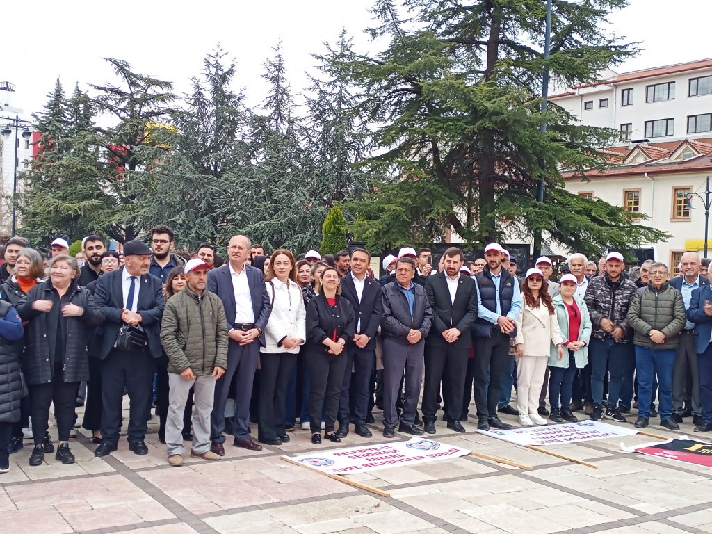 CHP İl Başkanı Dilek İlke Karabacak ise şunları söyledi; “Selam olsun topraktan öğrenip kitapsız bilene. Selam olsun dünyayı ellerinin üzerinde döndürene. Selam Olsun emekçi halkımıza. Selam olsun emek mücadelesine omuz veren gençlere, öğrencilere. Selam olsun ekmek ve gül mücadelesini birlikte ören kadınlara. Umut sizsiniz, emek sizsiniz bir araya geldiğinizde hiçbir kudret duramaz önünüzde. Bu memleketin sahibi esas efendisi sizlersiniz. Saray rejimi, halkın 31 Mart zaferinin ardından korku ve panikle, zorla irade üretme çabasına girişmiş, halkın yüz çevirdiğini anladığında ise 19 Mart Darbesiyle halkın iradesini gasp etme cüretini göstermiştir. İşsizliğe, güvencesiz çalışma koşullarına, geleceksizliğe, hukuksuzluğa mahkûm edilen geniş ve yoksul halk kesimleri, iradesinin gaspına ses yükseltmiş kitlesel eylemlerle meydanlarda buluşmuştur. Halkımız ‘Ya sefalet Ya Adalet ‘ demiş, sefalete mahkum edildiği sömürü düzeni karşısında adaletin safında bir arada durmuştur. 19 Mart darbesi dört başı mamur bir şekilde hayata geçirilememişse, bu sayededir. Öfkesine birlikte sahip çıkan emekçi halkın, hesabı birlikte ödetme kararlılığı sayesindedir. Sarayın sofrası her gün daha da büyürken halkın sofrası küçülmüş, mutfağı boş kalmıştır. Ücretlilerden alınan gelir vergisiyle yandaş müteahhitlere ihale üstüne ihale verilirken milyonların alın teriyle dönen bu çark, sadece bir avuç zengini beslemektedir.Bu düzen halkın değil, sarayın düzenidir. Bu memlekette emeğin kaderi, sarayda oturan tek bir adamın insafına bırakılmışsa; bu düzende adalet yalnızca saraya çalışıyorsa; ekmek, alın teriyle değil yandaşlıkla pay ediliyorsa işte o zaman, ‘Ya adalet ya sefalet’ diyerek birlikte direnmekten başka bir çaremiz yoktur.Bugün işçinin, emeklinin, memurun, kadının, gencin verdiği mücadele bir ücret mücadelesi değil, yaşam mücadelesidir. Bu düzen yalnızca cüzdanımıza değil, özlük haklarımıza değil, insan onuruna saldırmaktadır. İnsanca yaşam, ancak adaletin, özgürlüğün ve halk iradesinin egemen olduğu bir düzende mümkündür. kalsın benim dâvam dîvana kalsın’ demiş ozan ‘o dîvan sensin artık çünkü bıçak kemikte.’ Bizler bu ülkenin fabrikalarında, tarlalarında, sokaklarında, limanlarında, hastanelerinde, okullarında alın teri döken milyonlarız. Bizi yok sayanları tanıyoruz. Bize reva gördükleri sefalet düzenini reddediyoruz. Biz, emeğiyle yaşayanların iktidarını kurmak istiyoruz. Bu düzeni değiştirecek olan bizim irademiz, bizim mücadelemizdir. Emekçilerin payına yoksulluk, yandaş sermayenin payına ise ayrıcalık düşüren bu düzende, toplumsal eşitsizlik kader değil, iktidarın bir tercihidir. Şurası çok açık: Bu zalim iktidar karşısında sefalete teslim olamayız, olmayacağız. Hayatın her alanında adaleti hâkim kılacak ve böylece Cumhuriyet’in ikinci yüzyılını tam demokrasiyle taçlandıracağız. CHP, tarihi sorumluluğuyla emeğin Türkiye’sini kurmak için tüm kadrolarıyla hazırdır”