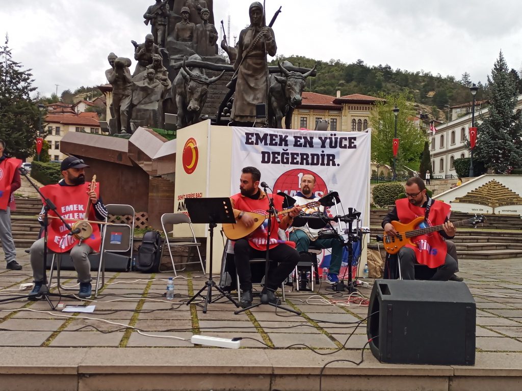 Şube Başkanı Ahmet Tevfik Bal, “Kardeşler, yurttaşlar biz emekçiler sendikalar bu hak ve özgürlükler olmadan sesimizi nasıl duyuracagız? Haklarımızı nasıl arayacagız?.onun için degerli emekçi kardeşlerim cumhuriyetimize demokrasiye hak ve özgürlüklerimize sahip çıkacagız.1 Mayıs’ta alanda olmak yerine salonda olmayı tercih eden sendikalarada buradan sesleniyorum;Alanlardan çekilmeyin! biz emekçiler alanlara sıgmıyoruz salonlara hiç sıgmayız.Adalet, Hak, Hukuk özgürlük en çok toplumun büyük bir çogunlugunu oluşturan biz emekçiler için gereklidir.Adalet olmadan ekmek olmaz o yüzden emekçiler olarak cumhuriyetimize demokrasiye hak ve özgürlüklerimize sonuna kadar sahip çıkacagız.Cumhuriyetimizi demokrasimizi hak ve özgürlüklerimizi sokakta bulmadık onu korumasınıada biliriz.Kardeşler Yurttaşlar yanlış ekonomi politikalarının ekonomiye yapılan siyasi tercihlerin sonucu olarak ağır bir ekonomik kriz içindeyiz. Hayat pahalılıgı enflasyon farkı büyüdü resmi rakamlarla gerçek rakamlar birbirini tutmuyor. Gerçek enflasyon resmi enflasyonun neredeyse 2 katı. Tüik’in yalancılıgı artık herkesin alay konusu oldu.işçilerin memurların emeklilerin esnaf ve çifçilerin yani emegiyle alın teri ile geçinenlerin gelirleri her geçen gün güneş görmüş kar gibi eriyor.günümüzde çalışanların içinde asgari ücretle çalışanlar büyük bir orana ulaştı.Asgari ücret Türk işin ve Birleşik Kamu İşin yaptıgı son araştırmaya göre açlık sınırının altında kaldı.Açlık sınırı şuanda 25 bin lira civarında. Değerli arkadaşlarım emeklilerimizi açlığa ve sefalete mahkum ettiler.Üstüne kamu çalışanlarının maaşları ve ücretleri yoksulluk sınırının çok çok altında ev sahibi olmak ailecek tatile gitmek adeta hayal oldu.Sağlık hizmetlerine ulaşım son derece zorlaştı,paranız varsa sağlık hizmetinden yararlanabiliyorsunuz.Okul çağındaki çocuklarımızın büyük bir kısmı aç, il merkezlerindeki okullarımız adeta insan silosuna döndü.İşsizlik ağır bir kronik sorun.Türkiye’de birçok insan iş bulma umudunu kaybettiği için iş aramaktan vazgeçiyor.İktidarda bunu iş arayanlar azaldığı için işsizlik oranı azaldı diye müjdeliyor.halbuki insanların gelecegi karartılmış umutları kırılmış. Türkiye’de en genci olarak ifade edilen ne eğitimde ne istihtamda olan gençlerin sayısı 15-24 yaş arasında geçen yıl 2 milyon 100 bin civarına çıkmış.15 29 yaşı aldıgımızda da 4 buçuk milyonun üzerinde osd ülkeleri arasında en genci olanlara bakıldıgında Türkiye ilk sıralarda yer almaktadır.Ülkenin en verimlileri olan gelecegi olan umudu olan gençler umudun hayatın dışına itilmektedir.Çalışanlar içinde bir yandan iş güvencesi azalmaktadır.bütün bunlar olurken ülkenin zengin kaynakları yandaşlara ölçüsüzce aktarılıyor.İşe girmede kayırmacagılıgın alası Mülakat uygulamaları yetenekli gençlerimizi eliyor.Onların umutlarını kırıyor.bir çok gencimiz bu yüzden hayatına son veriyor.Kardeşler, yurttaşlar Türkiye bulunan 16 milyon 800 binden fazla işçinin yanlızca %14 sendikalı bu işçilerin çoğuda kamuda çalışan işçiler özel sektörde çalışan işçilerede sendikalaşma oranı sadece %7,15 Türkiye’de neden böyle anayasa yasalar ve uluslararası sözleşmelere ragmen sendikal örgütlenme hakkı engellenmektedir.sendikalaşmaya çalışan emekçiler işsizlige mahkum edilmektedir.Emekçiler olarak yaşadıgımız sorunların nedenlerinden birede budur beslenme ve barınma bu gibi temel ihtiyaçlarımızın karşılanmaması durumuyla yüz yüzeyiz.Peki degerli kardeşlerim bu durumun sorumlusu kimler,bu krizi sizmi yarattınız?Krizin sorumlarılarını biliyoruz hepinizde biliyorsunuz.”dedi varolan krize deginerek sorunların kimin yarattıgını biliyorusunuz diyerek sözlerini ilerletirken,tasarufa ve kamudaki istihdamı azaltma egitimi ve hizmetleri kötüleştirmeye gidiyorlar diyerek sözlerine sonlandırdı.