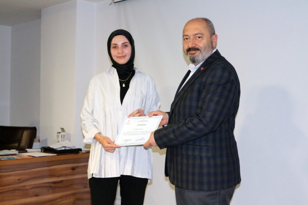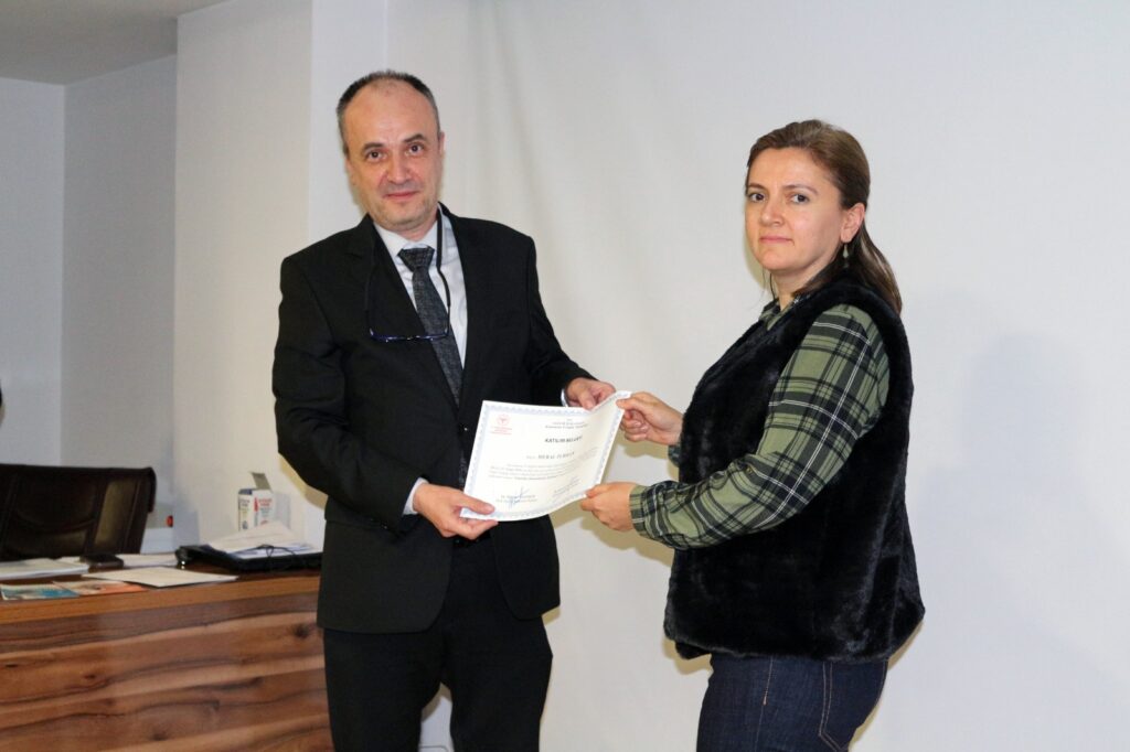 Eğitim programının sonunda, İl Sağlık Müdürü Dr. Fevzi Yavuzyılmaz ve başkanlık yetkilileri tarafından eğitmenlere teşekkür belgeleri, katılımcılara ise katılım belgeleri takdim edildi.
