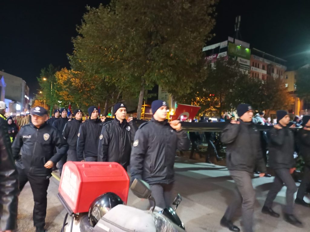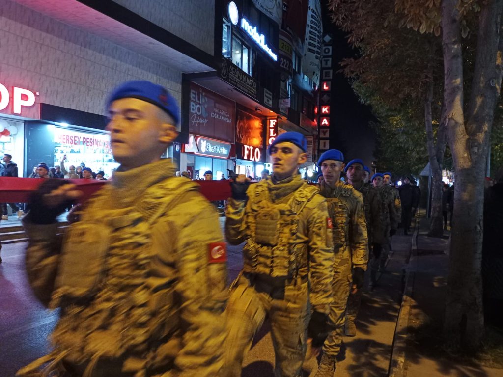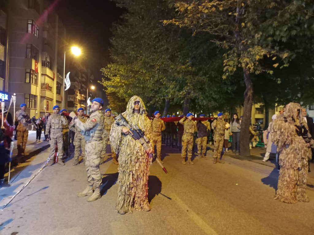 Düzenlenen Fener Alayı yürüyüşüne, Kastamonu’nun önemli isimleri,Askeri Güçler,Emniyet Güçleri ve vatandaşlar katılırken, ellerde bayrak ve meşale ağızlarda, “Ne Mutlu Türküm Diyene” sözü hep bir ağızdan söylendi.