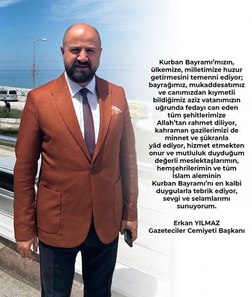 KGC Başkanı Erkan Yılmaz,Bayramı; “mukaddesatımız ve canımızdan kıymetli bildiğimiz aziz vatanımızın uğrunda fedayı can eden tüm şehitlerimizi Allah’tan rahmet diliyor, kahraman gazilerimizi de minnet ve şükranla yâd ediyor” sözleriyle anan Yılmaz, hizmet etmekten onur ve mutluluk duyduğu meslektaşlarının, hemşehrilerinin ve tüm İslam aleminin Kurban Bayramı’nı en kalbi duygularıyla tebrik etti.