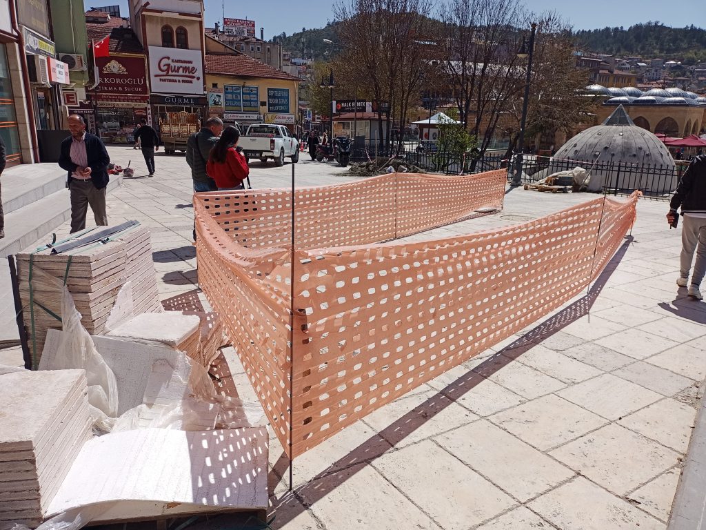 Tarihi Nasrullah Meydanında bulanan parkeler Kastamonu Belediyesi'ne bağlı ekiplerce yenileniyor.
