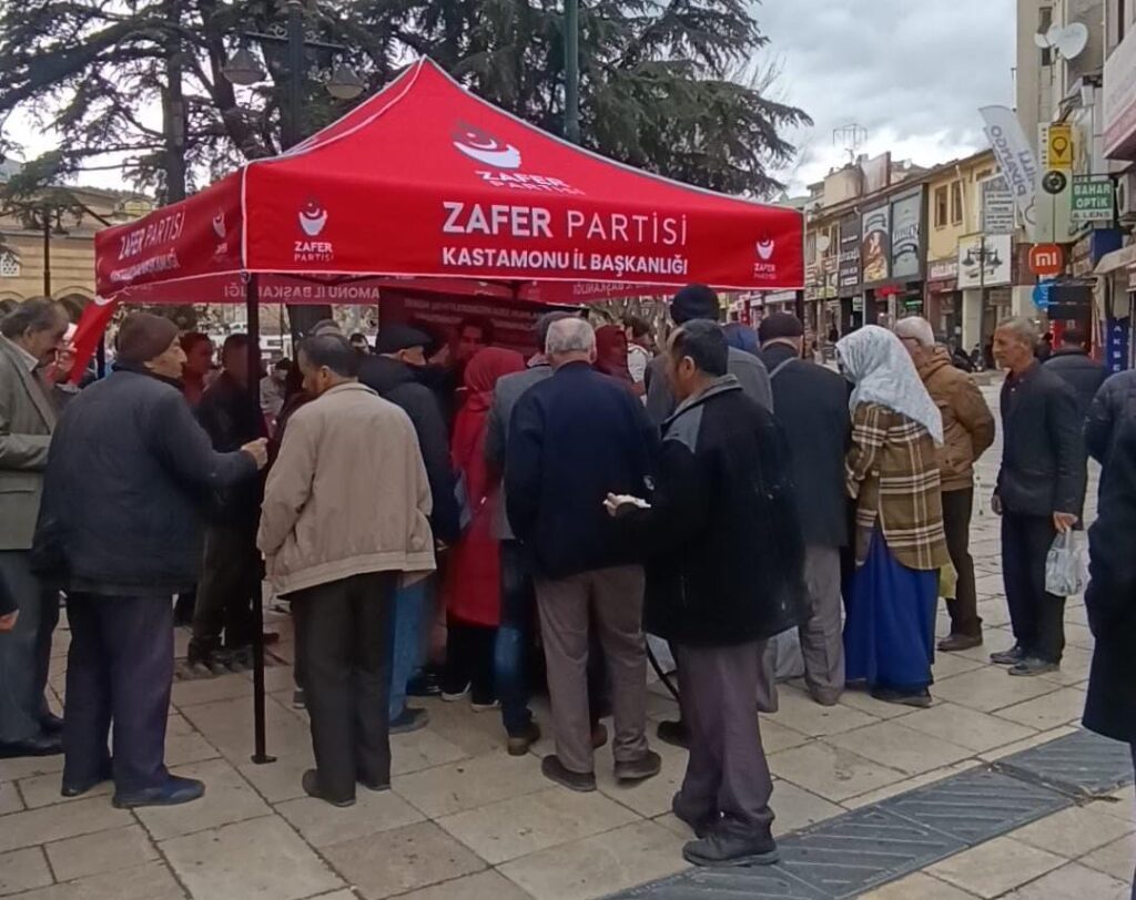 Zafer Partisi Kastamonu Teşkilatı, 19 Aralık 2025 Cuma günü başlatılan ve 9 hafta boyunca aralıksız sürdürülen yemek ikramlarının, Ramazan ayının gelişiyle birlikte son kez gerçekleştirildiğini duyurdu.