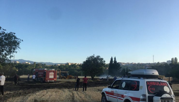 Çokca saman balyasınında kül olduğu yangın kontrol altına alınarak söndürüldü.