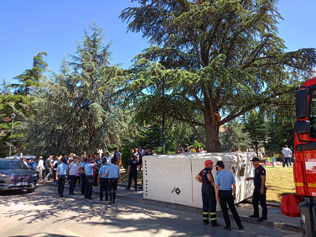 İtfaiye Müdürlüğüne bağlı ekipler bir düşme olayına karşı ağacın altına hava yastığı kurdu. Polis ikna ekipleri ise intihar girişimini sonlandırmak için müzakere çalışması yaptı.