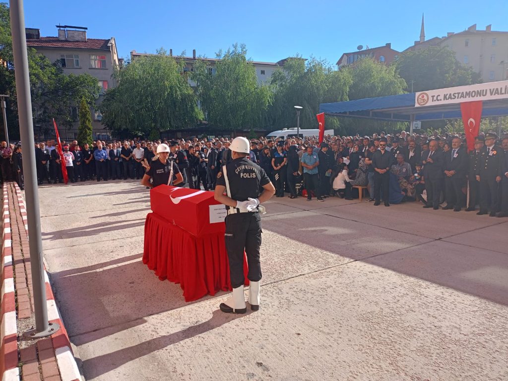 1 Ağustos 2024 tarihinde uyuşturucu bağımlısı ve cezaevi firarisi İsmail B tarafından şehit edilen polis memuru (38)Ahmet Şahan için Kastamonu İl Emniyet Müdürlüğü önünde tören düzenlendi.