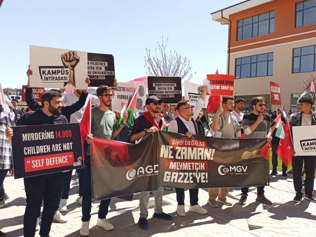 Kalpler filistinle.Anadolu Gençlik Derneği Kastamonu Üniversitesi komisyonu tarafından ve Milli Gençlik Vakfı katkıları ile Cuma çıkışı Üniversite içerisinde Filistin için yürüyüş düzenlendi. Yürüyüş Kastamonu Üniversitesi Merkezi Halk Kütüphanesinin önünde başladı.Kalabalık grup ellerinde Kahrolsun İsrail Pankartları ve dillerinde Allahu ekber edalarıyla İlahiyat Fakültesi önüne kadar yürüyüş gerçekleştirdi.