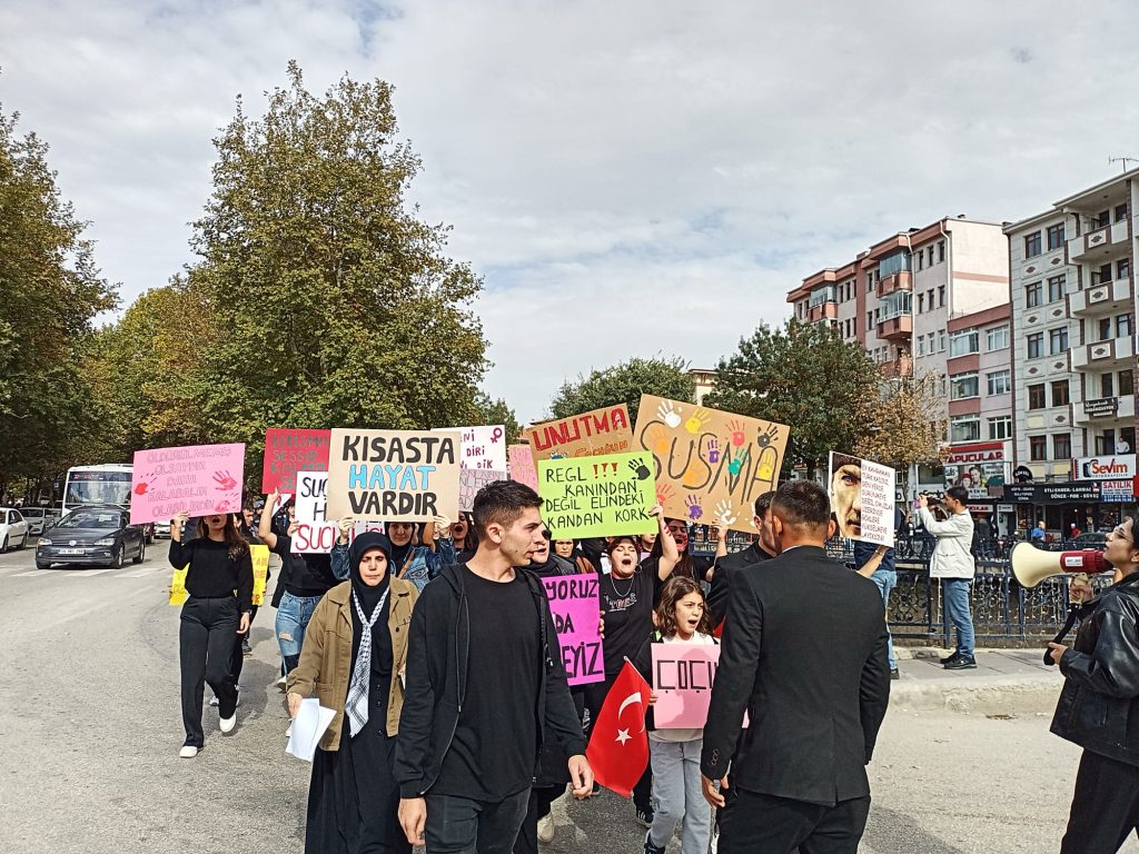 Saat 13.00’da Kışla parkında başlayan yürüyüş eylemi,öğrencilerin hazırlamış olduğu pankartlar ve yükselen “SUSMA SUSTUKÇA SIRA SANA GELECEK” sözleriyle Cumhuriyet Meydanına kadar devam etti.