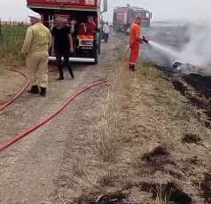 Yol Kenarında çıkan yangın büyümeden söndürüldü