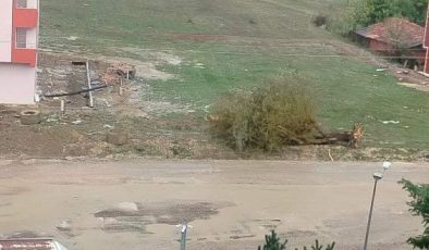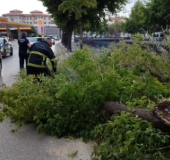 Kent merkezinde kısa süreli etkili olan fırtına ağaç devirdi.