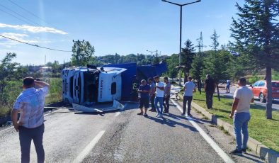 Tır devrildi; 1 yaralı