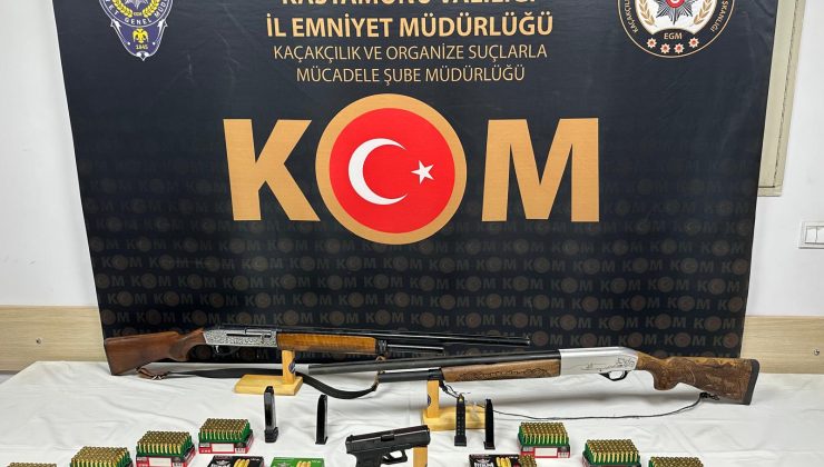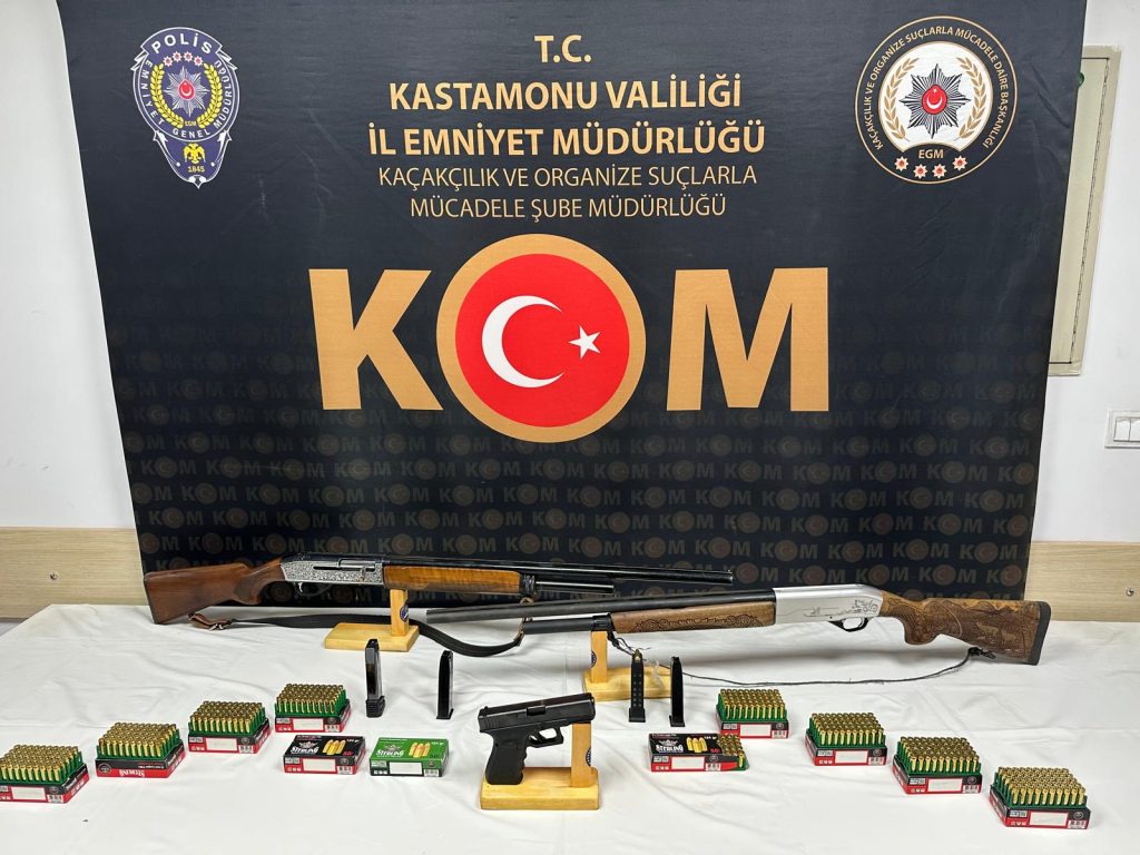 Kastamonu Emniyetine bağlı Kastamonu Kaçakçılık ve Organize Suçlarla Mücadele Şube Müdürlüğü ile Narkotik Suçlarla Mücadele Şube Müdürlüğü ekiplerinin çalışmaları sonucu Taşköprü ilçesinde 1 adet ruhsatsız tabanca, 2 adet ruhsatsız tüfek, 507 adet fişek ile 4 adet şarjör ele geçirildi.